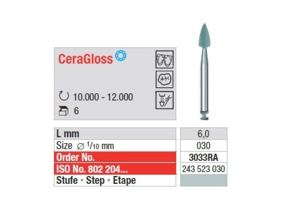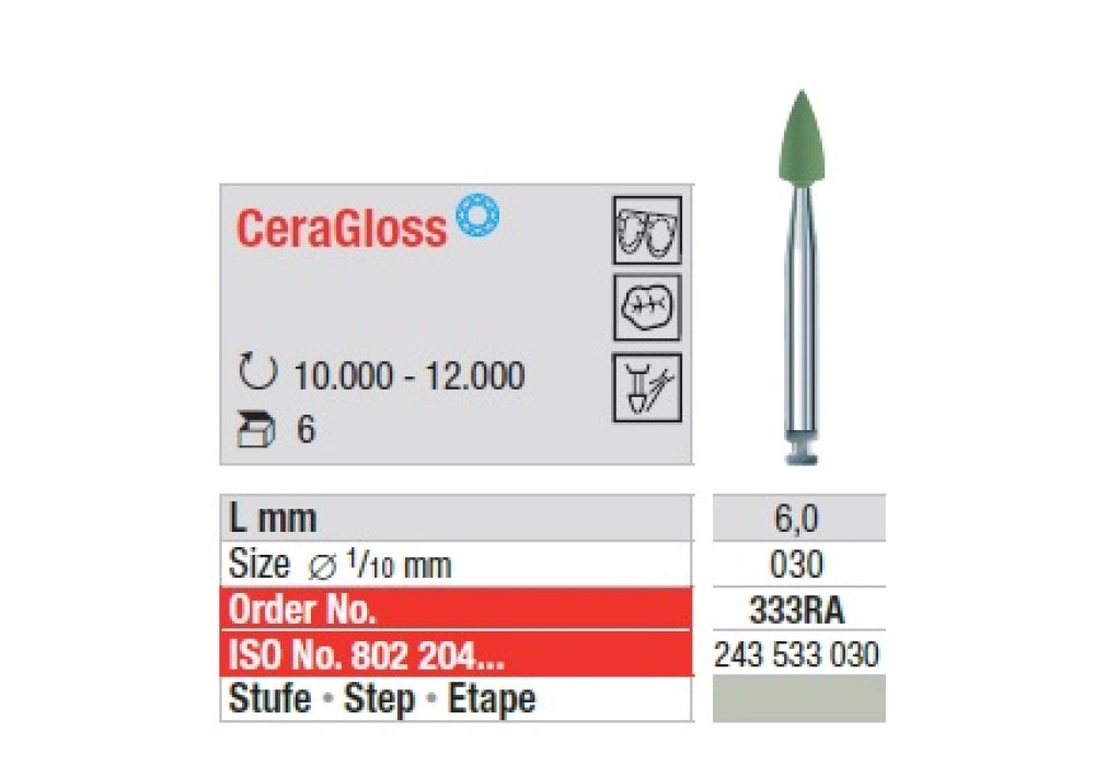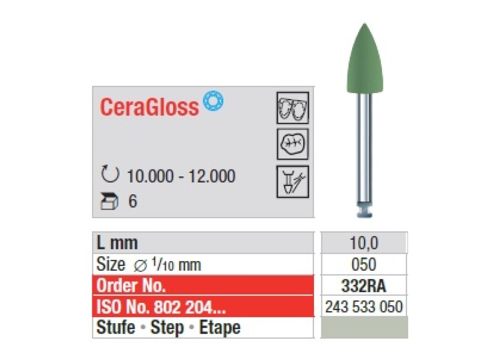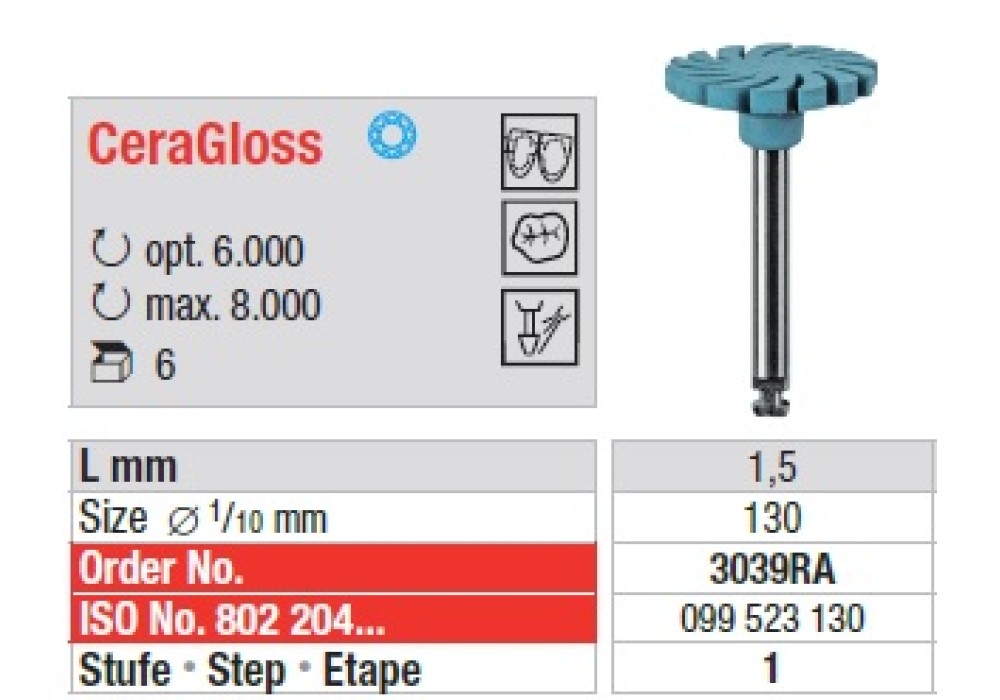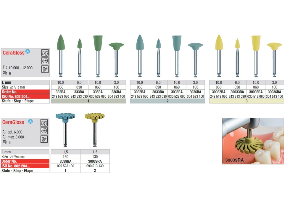 Système de polissage diamanté à 3 étapes pour traiter les obturations en céramique et les restaurations par couronnes partielles ou totales en céramique.