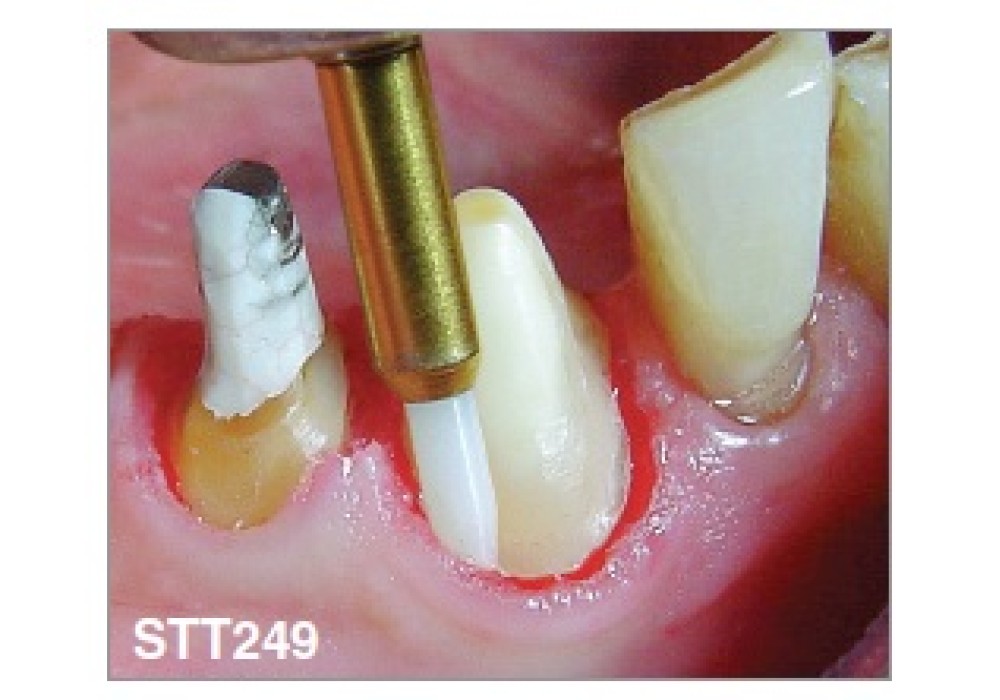 La grande robustesse du Soft Tissue Trimmer permet un travail rapide et sûr au niveau de la gencive.