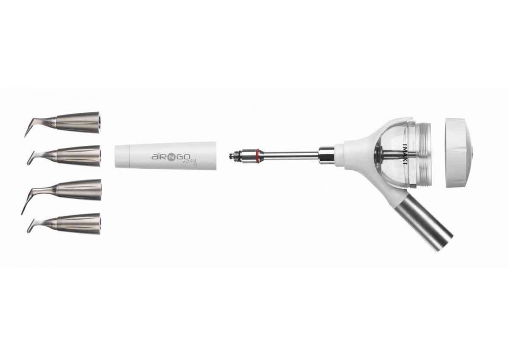 Conditionnement : Livré avec une pièce à mains AIR-N-GO easy convertible avec un buse SUPRA, 1 kit de sachets de 20g de poudres "CLASSIC" et "PEARL", 1 kit de maintenance AIR-N-GO easy (tube de graisse silicone avec ses pinceaux applicateurs, joints de remplacement, seringue et canule, foret de nettoyage