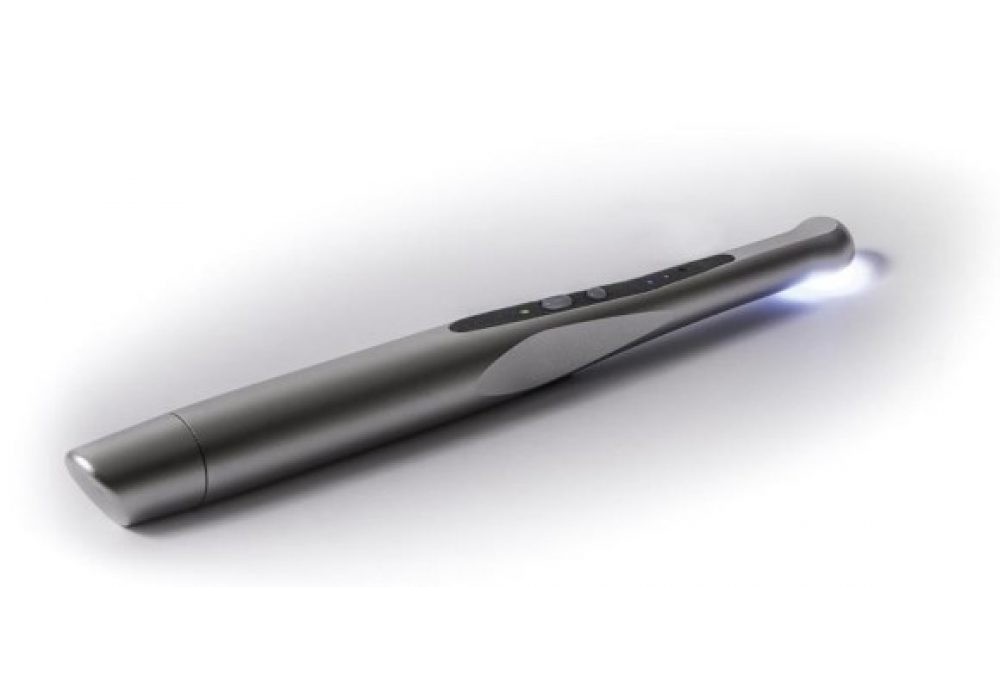 1 pièce à main + 1 base / chargeur + 2 embouts oranges de protection oculaire. 100 gaines de protection jetables. Couleur aluminium