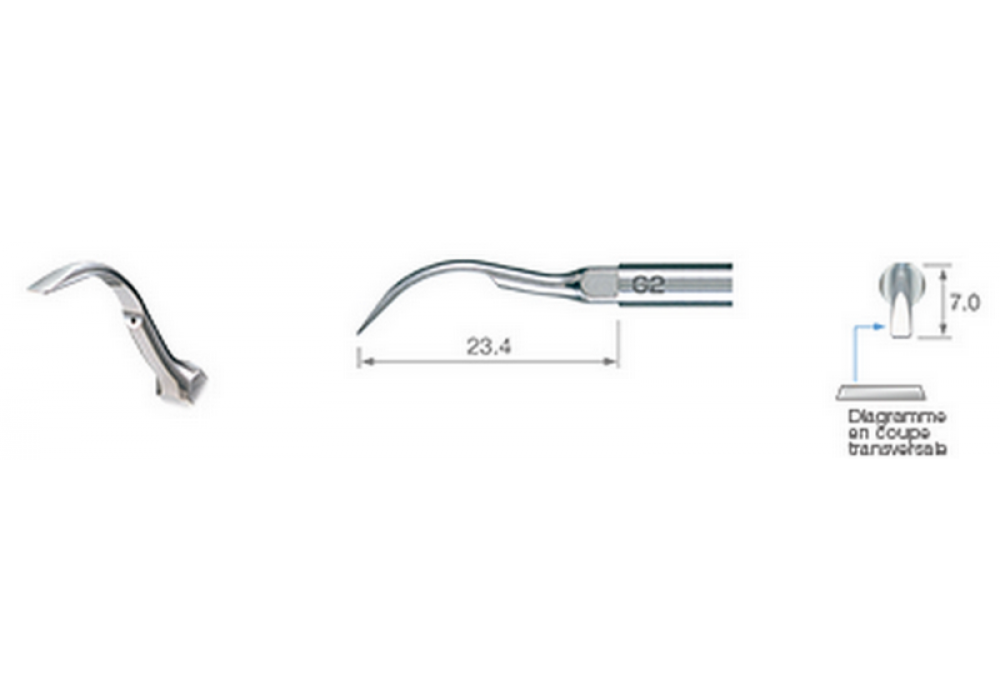 • Pour retirer le tartre difficile, placer l'insert G2 à plat sur la surface de la dent et activer les ultrasons.