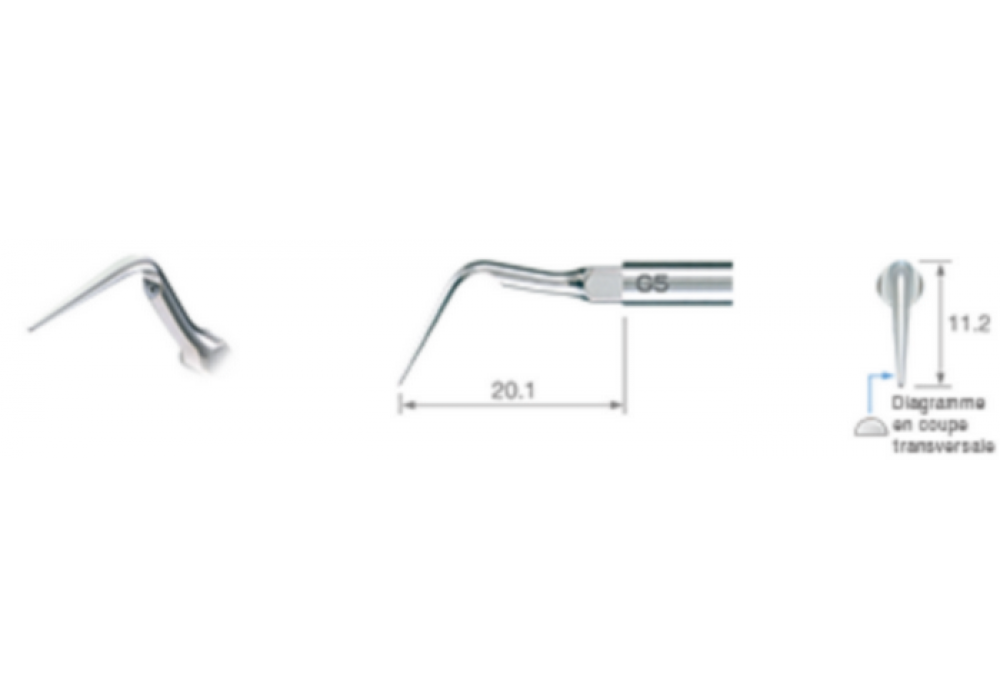 • Pour retirer le tartre interdentaire et les poches de tartre, insérer l'insert entre les dents tout en touchant la dent.