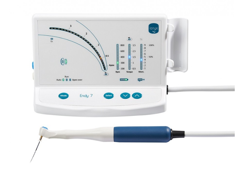 Technologie utilisée par IONYX depuis 1996, le retour à vitesse lente d’1 seconde vous permet de dégager l’instrument sans refouler de débris dentinaires vers l’apex.