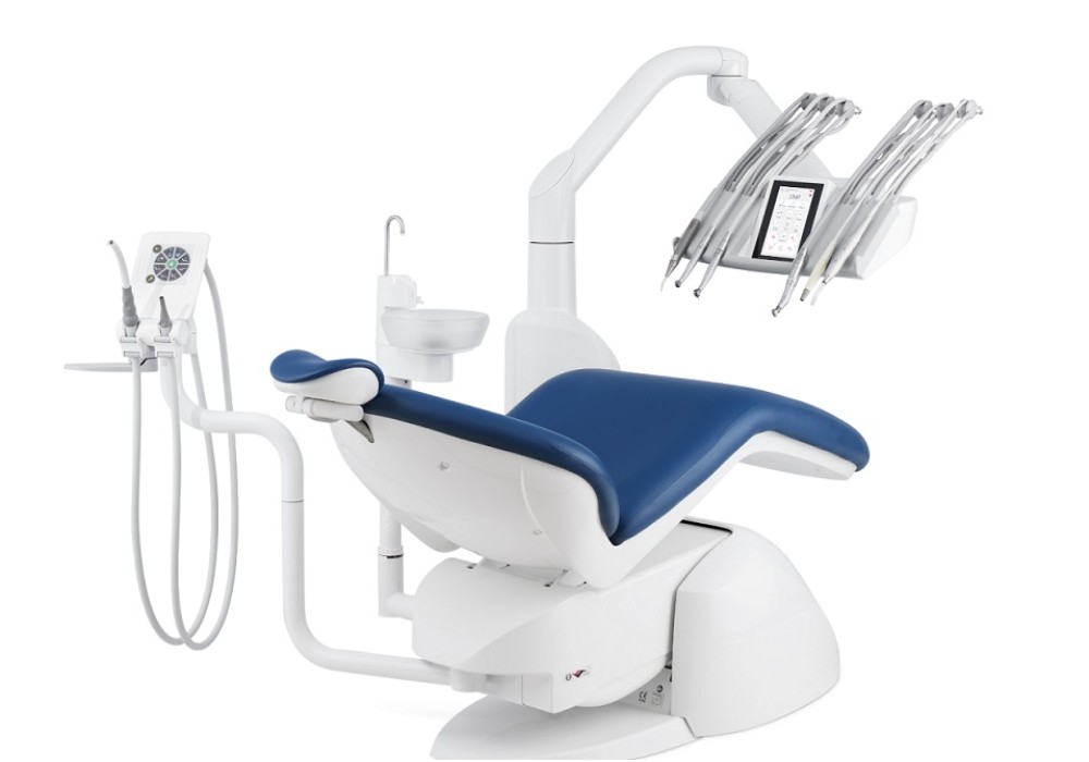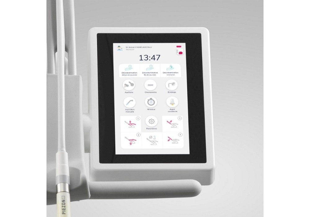 Elle inclue également les commandes des mouvements du fauteuil et la programmation des positions du crachoir et de la dernière position de travail.