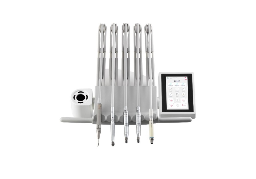 L’encombrement réduit, l’ergonomie étudiée et la maniabilité remarquable de la tablette porte-instruments la rendent particulièrement homogène dans son utilisation. Positionnement de la tablette facilitée par la poignée à déclenchement sensitif qui libère les rotations. La prise en main de chaque instrument est optimisée par un balancier sans rappel et une grande longueur de cordon pour un travail dans toute position.