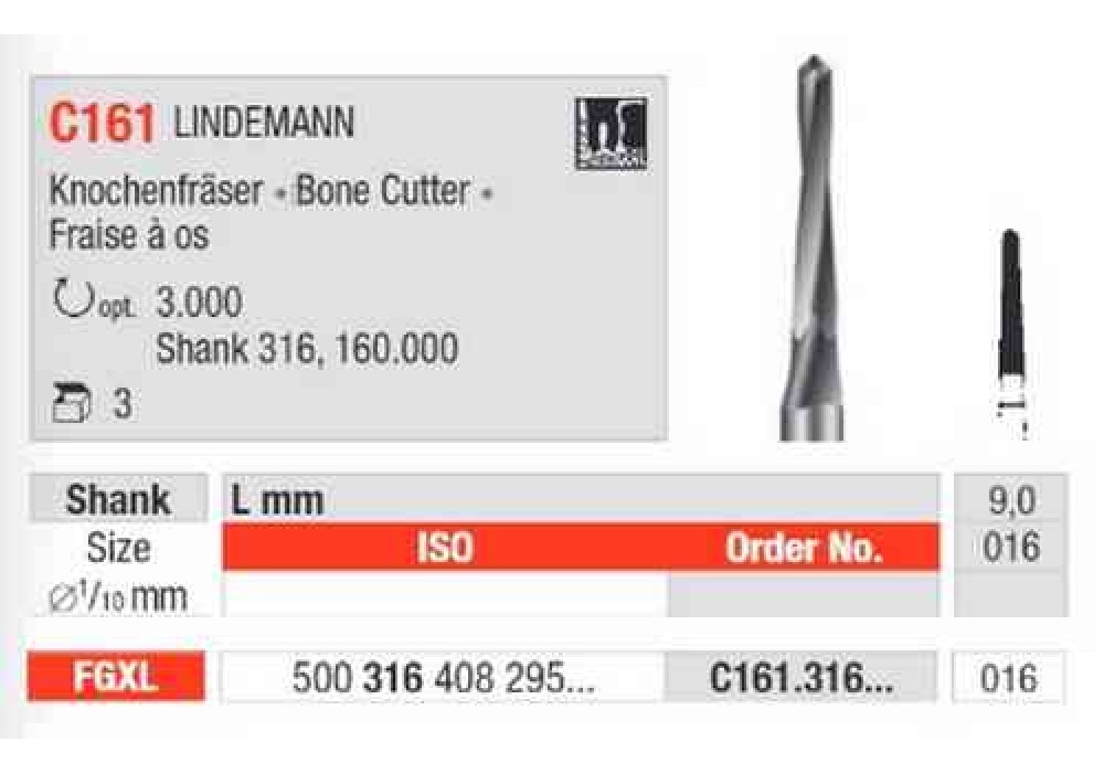 • Fraises C161.316.016 LINDEMANN EDENTA (x3)